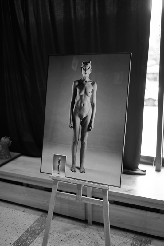 В этой серии маска Кицунэ работает как семантическая заслонка: она снимает с портретов всякую персональную «историю», оставляя нам чистую величину женского тела как пластического языка. Лисица в японской мифологии — трансформер, играющий формой и значением; здесь маска объединяет, не лишая различий. В каждом кадре — одно и то же имя: женщина. Но каждое тело — уникальный ритм, своя плотность света и тень, свой след дыхания, своя красота.