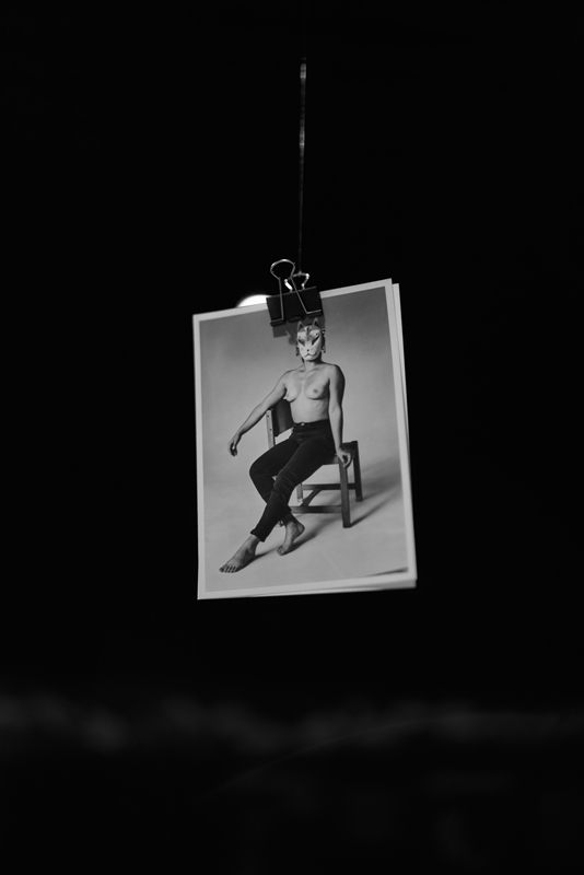 Форма также важна: среднеформатная плёнка и оптическая печать дают особую фактуру — плотную, тактильную, почти материальную. Эти отпечатки не просто показывают обнаженное тело, они приглашают к сенсорному чтению изображения: кощунство текстур, блеск глаз, мягкость кожи, зерно плёнки. Коллаж из портретов и монументальная фотография маски работают как визуальная мантра — множество лиц становится единой силой, а крупные работы с обнажёнными фигурами возвращают нас к интимности и уязвимости, которые не нуждаются в имени.