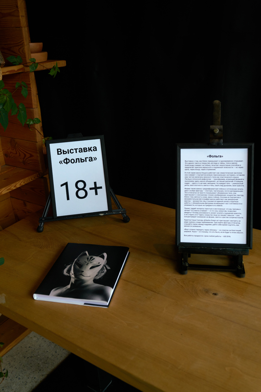 Выставка о том, как блеск прикрывает и одновременно открывает. Это диалог света и покрытия, взгляда и тайны, тела и маски. Александр снимает на плёнку, печатает аналоговым способом и предлагает зрителю вернуться к подлинной телесности — но через щель, через искру, через отражение.