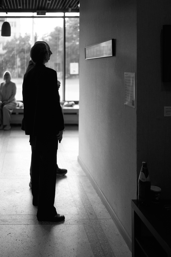 На противоположных стенах расположены два независимых проекта, которые вместе создают концептуальную мысль в фотографии и искусстве в целом.